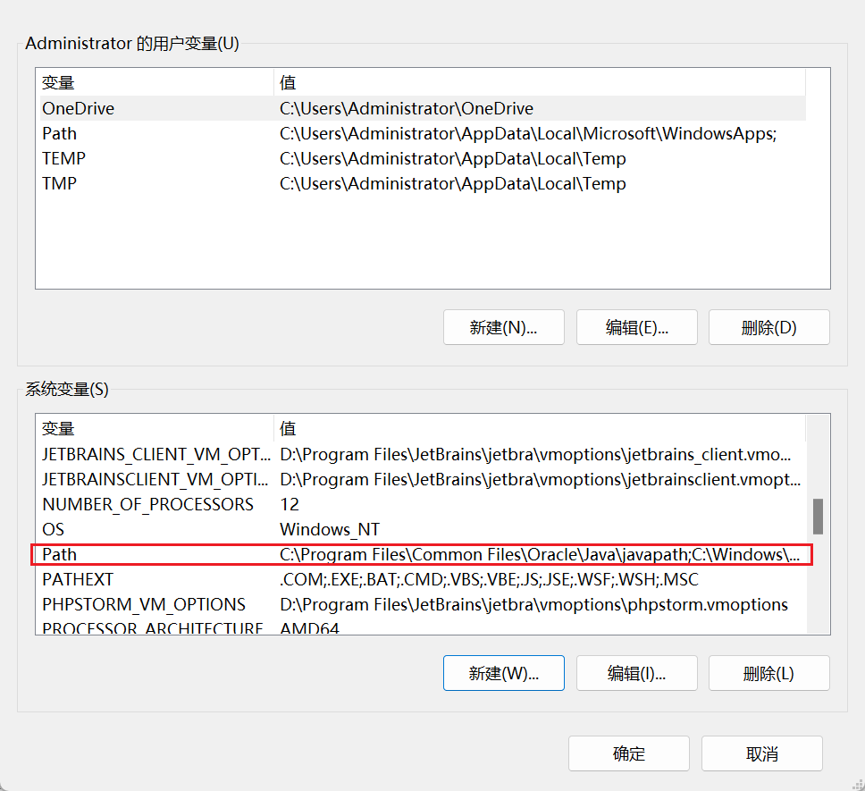 变量值: .;%JAVA_HOME%\lib(前面有一个.;) - 在系统变量里找到Path,双击打开
