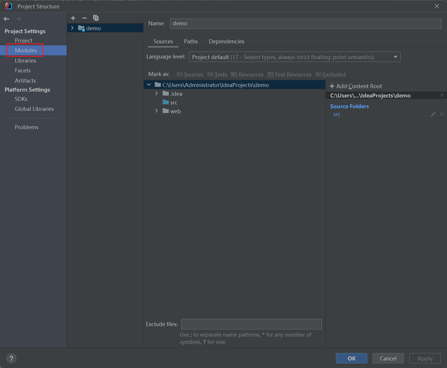 - 选择Modules