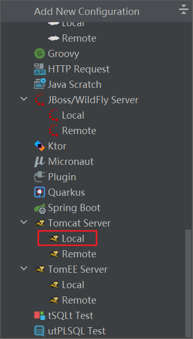 - 往下拉找到TOMCAT Server下的Local并点击
